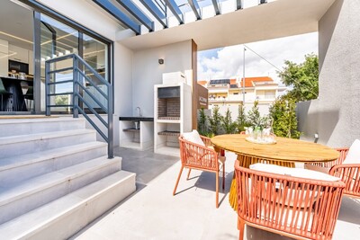 Área Exterior Exclusiva: Logradouro de 84,65 m² com jardim, churrasqueira e zona de estar (verdadeiro oásis urbano).